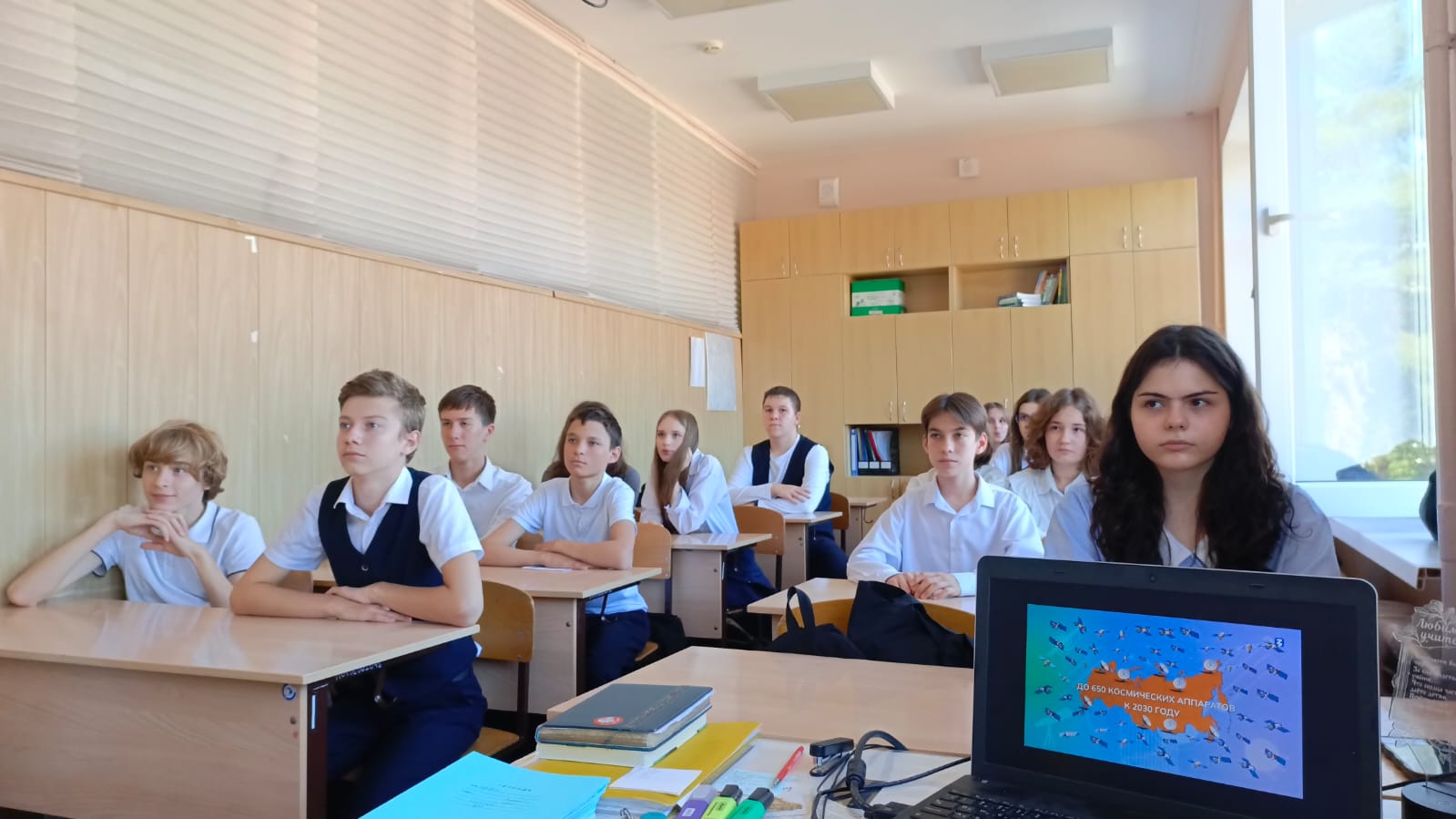 Сегодня, 16.05, в 7в классе был проведён классный час по теме "Моё будущее, моя страна" из цикла классных часов "Россия - мои горизонты"